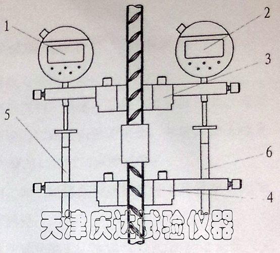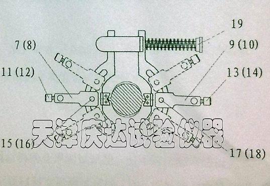 d)壓緊夾緊手柄19使測量支架漲開,將上測量支架3安裝在試件的上標距點,下測量支架4安裝在時間的下標距點;