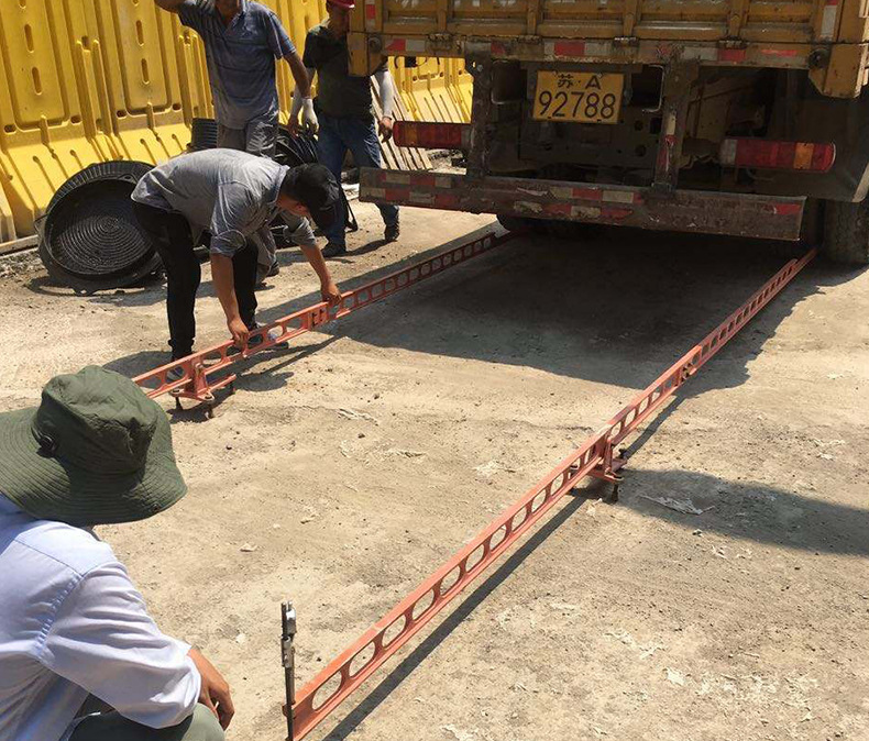 2、向汽車車槽中裝載(鐵塊或集料),并用地中衡測量后軸總質量,符合要求的軸重規定,汽車行駛及測定過程中,軸重不得變化。