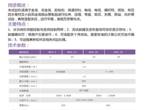 WDW-30型微機控制電子多效果 試驗機是專門針對高等院校、科研院所而設計的新一代雙空間微機控制電子多效果 試驗機。試驗機主機與輔具的設計借鑒了日本島津的先進技術,外形美觀,操作方便,性能穩定可靠。計算機系統通過高精度控制器,經調速系統控制伺服電機轉動,經減速系統減速后通過精密絲杠副帶動移動橫梁上升、下降,完成試樣的拉伸、壓縮、彎曲等多種力學性能試驗,無污染、噪音低,效率高,具有非常寬的調速范圍和橫梁移動距離,另外配置種類繁多的試驗附具,在金屬、非金屬、復合材料及制品的力學性能試驗方面,具有非常廣闊的應用前景。該機廣泛應用于建筑建材、航空航天、機械制造、電線電纜、橡膠塑料、紡織、家電等行業的材料檢驗分析,是科研院校、大專院校、工礦企業、技術監督、商檢仲裁等部門的理想測試設備。